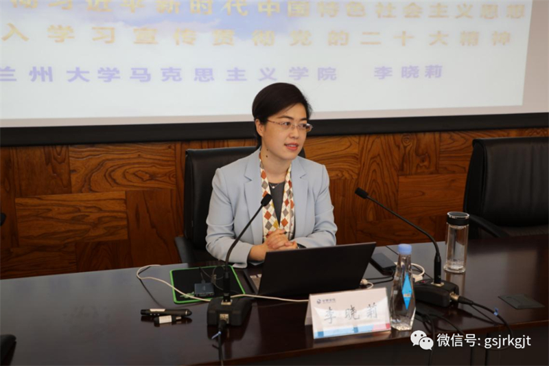 蘭州大學馬克思主義學院副教授李曉莉同志用世事紛繁多元應、思想之旗領航向、人間正道開新篇、初心砥礪天地間、彩云長在有新天五個生動、形象的標題,詳細闡述解讀了對黨的二十大報告“五個牢牢把握”的重要要求。
