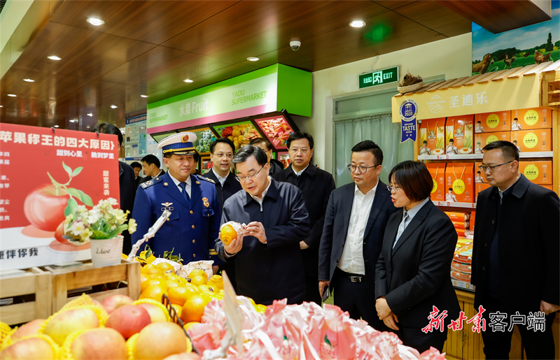 12月30日,元旦假期來臨之際,省委書記、省人大常委會主任胡昌升在蘭州調研檢查安全生產、民生商品保供穩價和節日消費等工作,走訪慰問全國先進工作者、老黨員和基層一線工作人員,向全省人民致以節日祝福。(記者孟捷)