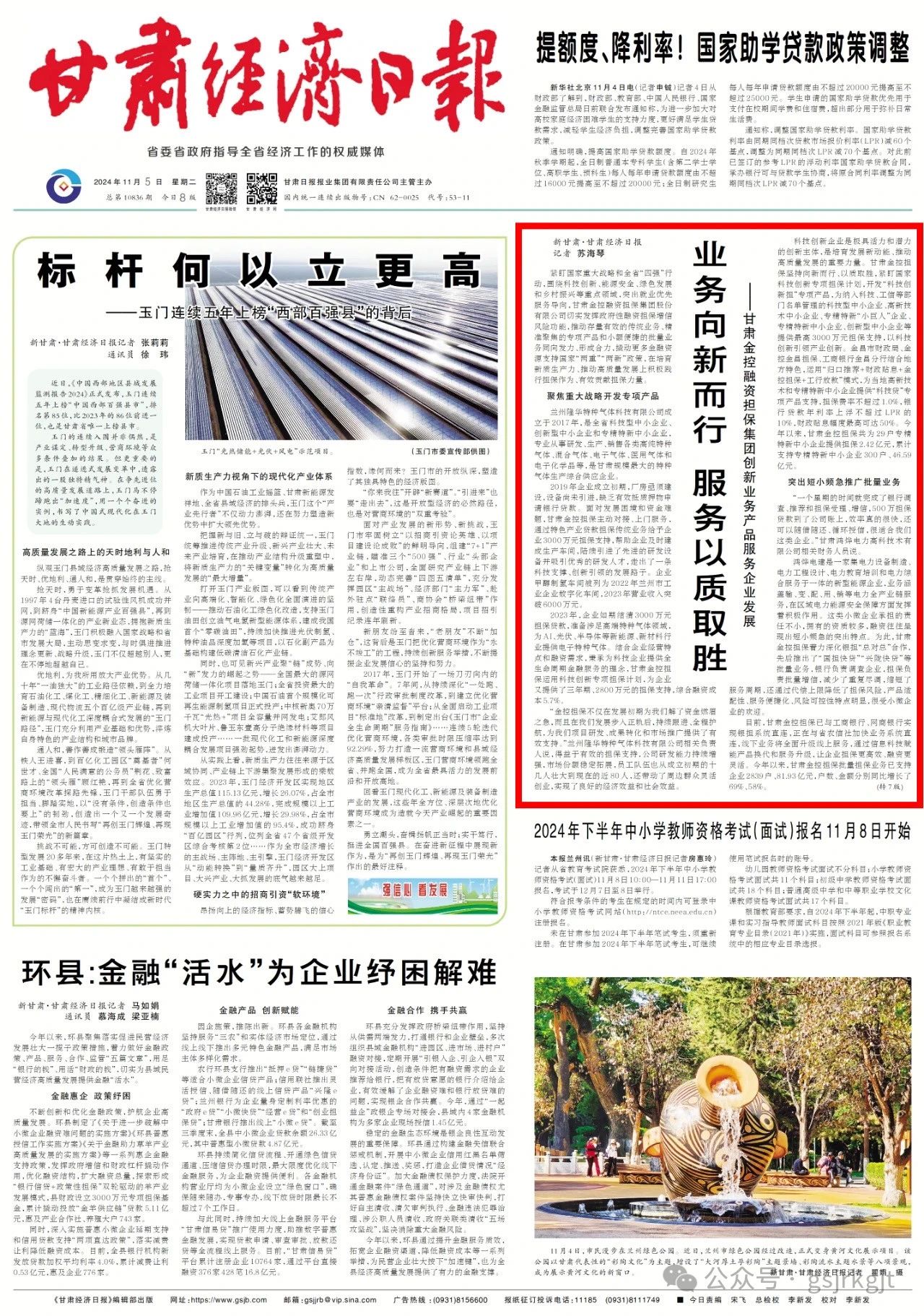 業務向新而行 服務以質取勝——甘肅金控融資擔保集團創新業務產品服務企業發展