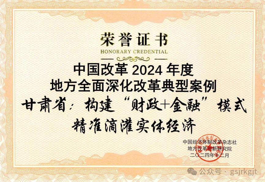 新甘肅客戶端蘭州訊(新甘肅·甘肅日報記者曹立萍)日前,甘肅省構建“財政+金融”模式精準滴灌實體經濟案例入選“中國改革2024年度案例”。這是此次我省入選15個改革案例中,唯一一個涉及財政金融領域的改革案例。