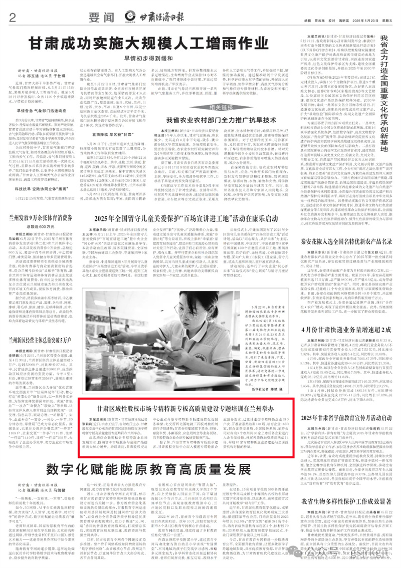 媒體關(guān)注 | 甘肅區(qū)域性股權(quán)市場專精特新專板高質(zhì)量建設(shè)專題培訓(xùn)在蘭州舉辦