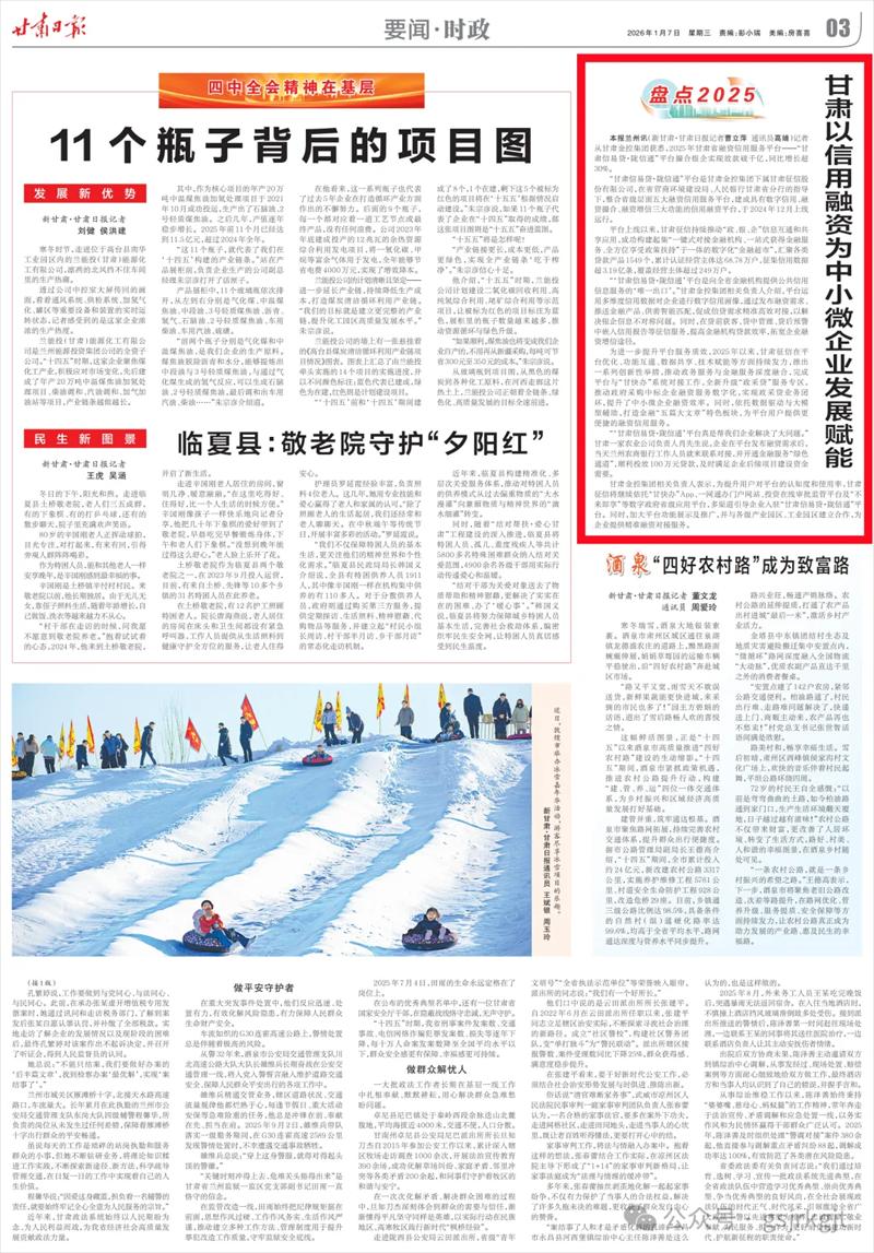 為進(jìn)一步提升平臺(tái)服務(wù)質(zhì)效,2025年以來,甘肅征信在平臺(tái)優(yōu)化、功能互通、數(shù)據(jù)共享、技術(shù)賦能等方面持續(xù)發(fā)力,推出一系列創(chuàng)新性舉措,推動(dòng)政務(wù)服務(wù)與金融服務(wù)深度融合,完成平臺(tái)與“甘快辦”系統(tǒng)對(duì)接工作,全新升級(jí)“政采貸”服務(wù)專區(qū),推動(dòng)政府采購(gòu)中標(biāo)企業(yè)融資服務(wù)數(shù)字化,實(shí)現(xiàn)政采貸業(yè)務(wù)閉環(huán),提升了中小微企業(yè)融資效率。同時(shí),依托數(shù)據(jù)驅(qū)動(dòng)與大模型輔助,打造金融“五篇大文章”特色板塊,為平臺(tái)用戶提供更便捷的融資信用服務(wù)。