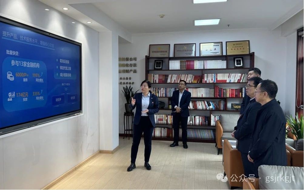 調研組一行聽取了金控擔?;厩闆r和經營狀況介紹,詳細了解金控擔保以控股模式推進一體化體系建設、以數智創新賦能高質量發展等情況,并觀看了金控擔保信息系統和項目管理系統演示,對金控擔保運用“科創保”“設備擔”等專項產品服務保障“兩新”“兩重”政策的做法給予肯定,希望甘肅和安徽兩省政府性擔保機構加強交流合作,在服務重大戰略和地方經濟方面作出更大貢獻。