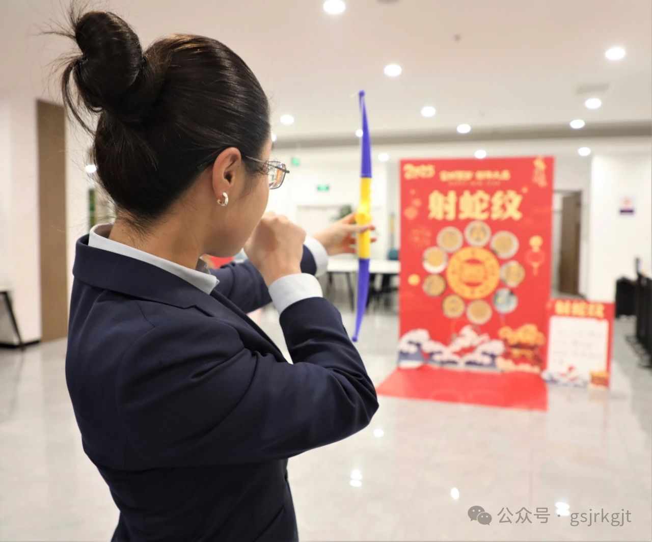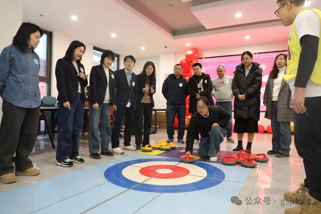 隨著鏗鏘有力的鑼鼓聲,兩只威武靈動的“祥瑞金獅”躍入會場,拉開活動序幕,在舞獅隊員輾轉騰挪間,集團公司領導執筆點睛,寓意新年開新局。隨后開展的“古韻新潮”游戲區人聲鼎沸,投壺游戲中的“上上簽”破空聲與歡呼聲此起彼伏,“射箭”靶場選手凝神靜氣“百步穿楊”,“釣魚”現場錦鱗翻飛笑鬧如潮,套圈環節精準拋擲歡呼雀躍,冰壺賽道上更是上演“智謀對決”,團隊協作的默契充分展現。現場氣氛熱烈,歡笑與掌聲交織出歡樂的海洋。